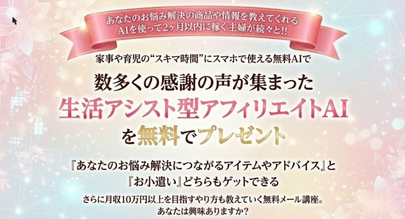 「生活アシスト型AIアフィリエイト」というサービスです。
